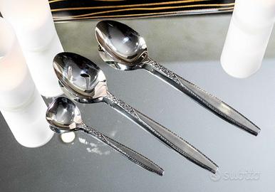 Totale 76 pezzi: 12 Forchette 12 Cucchiai 12 Coltelli 24 Cucchiai piccoli 12 Forchette piccole 2 Cucchiai da portata 1 Palettina 1 Coltellino