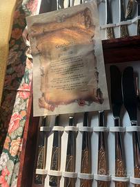 Servizio posate completo 12 pezzi mai usate,placcate in oro zecchino come da certificato.