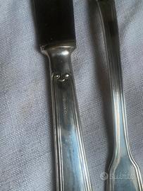 Vendo bellissimo servizio posate da 12 anni 40 placcato in argento 800 e lame coltelli in accisio inox . Il servizio è da pulire perché è stato sempre in soffitta e sia la valigetta che l’interno della valigettapresentano delle rotture . I pezzi sono complessivamente 87 . Ribadisco. Che è da pulire .le posate sono nella valigetta. Originale