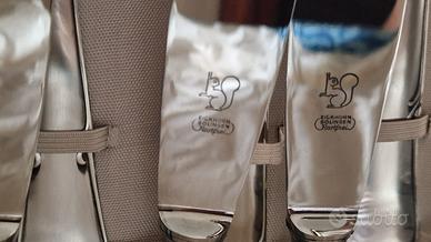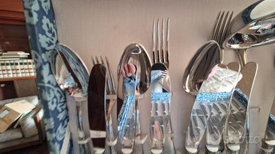 Descrizione: Vendesi bellissimo servizio di posate vintage originale Eickhorn Solingen (Germany), anni '60/'70. La qualità dell'acciaio di Solingen garantisce una durata eterna e una brillantezza superiore. Il set presenta un design intramontabile con bordi sagomati, perfetto sia per un uso quotidiano raffinato che per occasioni speciali. Composizione del set: 12 Coltelli, 12 Forchette, 6 Cucchiai (principali) 12 Coltelli e 12 Forchette (dessert/frutta) 1 Mestolo da zuppa coordinato Custodia originale inclusa con interno damascato blu e bianco. Condizioni: Eccellenti, mai usato, come da foto.