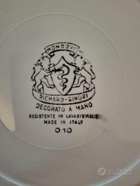 Vendesi servizio stoviglie Richard Ginori in porcellana decorata a mano, comprensivo degli elementi in foto. I piatti sono 12 + 12 + 12. Ben conservato, nessuna rottura o riparazione. Foto aggiuntive su richiesta per dettagli o eventuali.