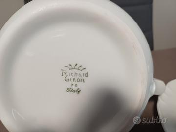 servizio richard ginori vintage per 12 persone colore bianco puro sempre tenuto per bellezza e mai stato utilizzato e neanche uno sbrecco è come nuovo tazza grande. non spedisco