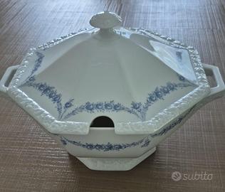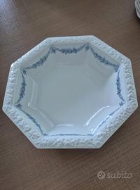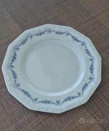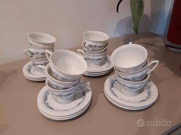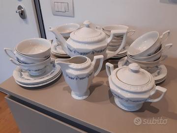 Servizio così composta in condizioni come da foto: 12 piatti fondi 11 piattini frutta 22 piatti piani 12 tazzine caffè 12 tazze the 1 teiera 1 lattiera 1 zuccheriera Cortesemente solo contatti telefonici al 335/5808581.