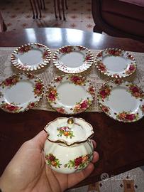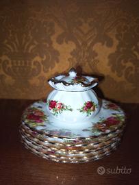 Servizio piattini / zuccheriera 7 pezzi. Bone China made in England 1962/73. Comprende: 1 zuccheriera con coperchio 6 piattini da dolce/frutta. Non rispondo alle email solo messaggi whatsapp (3402593009) . Non spedisco, sono disposta a consegnare personalmente solo in provincia di Lucca. Prezzo non trattabile
