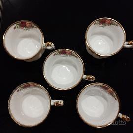 Vendo servizio Royal Albert “Old Country Roses”: 6 tazze con piattino. 5 in perfette condizioni mai usate, 1 usata con piccola crepa interna (come da foto). Vendo anche separatamente