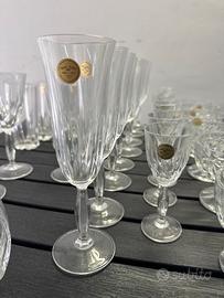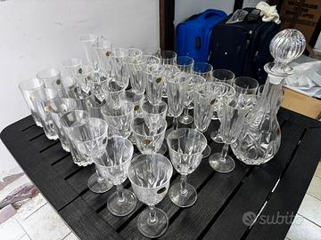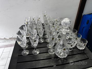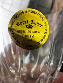 Servizio Royal Tudor Elizabethan - Cristallo 24% PbO. Il servizio è composto da 50 pezzi più la caraffa completa di tappo. Dettaglio dei pezzi: Bicchieri da vino 6 Bicchieri acqua/long drink 8 Flûte da spumante/champagne 8 Bicchieri da liquore/rosolio 9 Coppe da dessert 6 Bicchieri da whisky o liquore 7 Calici medi 6 Tutti i pezzi sono integri e non sono scheggiati.