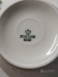 Servizio da consommé, 6 tazze, 6 piattini e zuppiera , bordati in oro. Mai usati marca scherzer Bavaria Prezzo trattabile