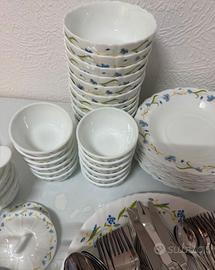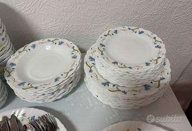 Servizio vintage completo da 12 persone in ceramica vetro opalino molto resistente.