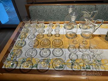 Servizio da tavola incompleto degli anni 30. In vetro con delle serigrafie tono su tono. Vetreria in perfette condizioni; si preferisce ritiro a mano. SUPERPREZZO.