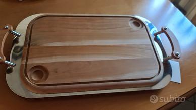 Tegame rettangolare, basso, acciaio inox 18/10 misure 45x28 con coperchio tagliere in legno, con cartellino