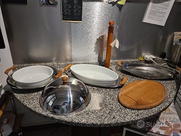 Anni 80/90 set di pregio, composto da 5 pezzi da forno e da tavola e, escluso quella con campana, tutto nuovo e con cartellino.