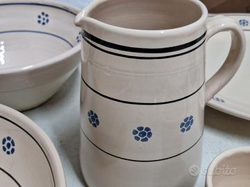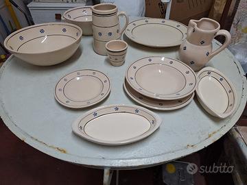 vendesi servizio completo da 6 : piatti piani,fondi , piattini frutta , bicchieri, piatti da portata e di brocca vino e acqua e altro di ceramiche di grottaglie. Fatti a mano autore Fasano.