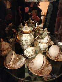 Il servizio è completo di lattiera, zuccheriera e theiera.