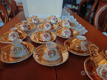 tazzine caffè bavaria,purtroppo non è completo sono 11 tazzine e 12 piattini di cui due tazzine sono di disegno diverso,e 2 zuccheriere vendo a prezzo modesto perché non è completo,ma ugualmente bello valuto offerta