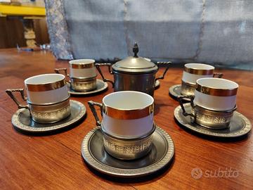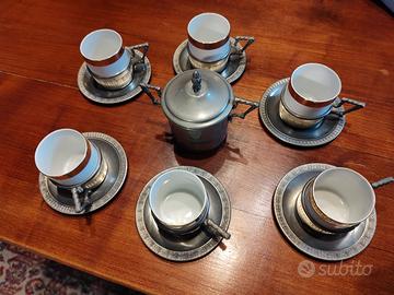 Servizio tazzine caffè "Porcellana e Peltro"