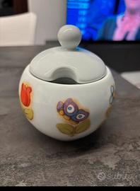 6 tazzine, 6 piattini, 1 zuccheriera. Mai utilizzato.
