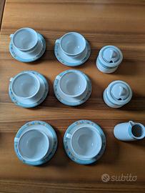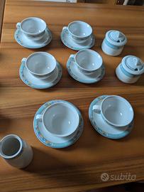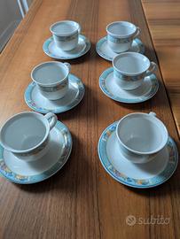 Vendo causa inutilizzo set formato da 6 tazzine con piattino, 6 tazze con piattino, rispettivamente da caffè e tè, 2 zuccheriere, 1 lattiera.