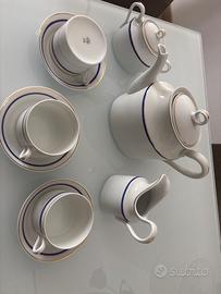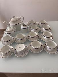 Servizio da te’ Richard Ginori vintage completo 12 persone, teiera - zuccheriera- lattiera vintage. Composto da : 12 tazze con piattino 1 teiera 1 zuccheriera con coperchio 1 lattiera Decoro classico con bordo blu e oro. Condizioni molto buone, nessuna rottura evidente. Ideale sia per utilizzo che come servizio di collezione. Vendo in blocco