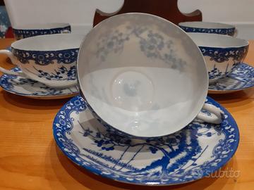 Servizio composto da 6 tazzine da tè caffè cinesi in porcellana finissima (vedi foto in controluce). Periodo metà del '900.