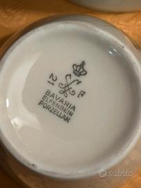 Servizio da tea per 6 persone in porcellana tedesca, Elfenbain Bavaria, con caffettiera, zuccheriera , lattiera e 6 tazze tea con relativo piattino anni ‘50/‘60, nuovi.