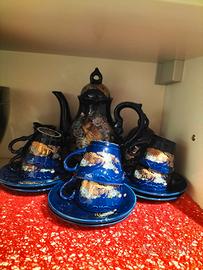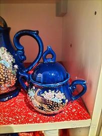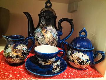 Vendo servizio da thè o caffè in porcellana, dipinto a mano, proveniente dal Marocco, nuovo, composto da teiera, zuccheriera, lattiera, n.6 tazzine e n.6 piattini.