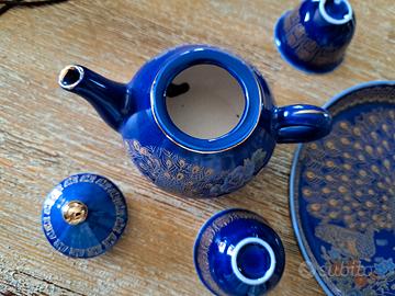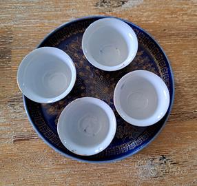 Vendo servizio da the cinese originale in porcellana fine. Composto da 4 tazzine mignon, 1 teiera piccola ed 1 piattino. Vintage nuovo e in perfette condizioni. Non presente scatola originale.