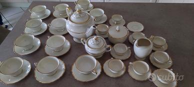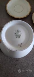 Vendo vecchio servizio the 11 tazze con piattino, 1 zuccheriera , 1 teiera marca hohenberg , servizio 9 tazzine caffè con piattino, 1 zuccheriera, 1 Brico latte tutto in porcellana tedesca con bordo in oro ,marca heinrich a 170 euro
