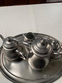 Servizio da the in peltro 95% , quattro pezzi,ottime condizioni, mai usato, vassoio escluso Se interessa posso regalare il vassoio