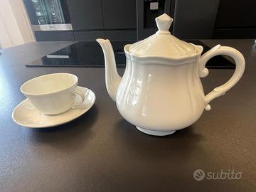servizio da the porcellana Richard Ginori "antico doccia" bianco: 5 tazze da the con piattino teiera con coperchio ritiro a domicilio