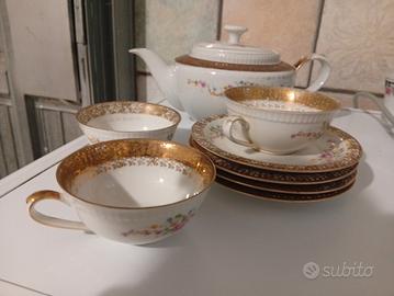 incompleto con teiera originale in porcellana tedesca e 3/4 tazze (4 piattini)