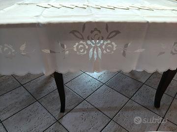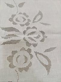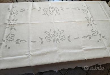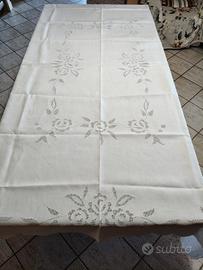 servizio da tavola con 12 tovaglioli in sfilato siciliano al 500 in puro lino Bellora, ricamato a mano misure cm 180 x 280