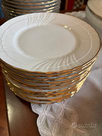 Elegante modello in porcellana bianca sottile e leggermente traslucida, impreziosito da bordo in oro (oro zecchino / 24 kt), simbolo di raffinatezza tipico dei servizi del ‘900. ✨👑