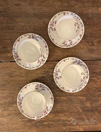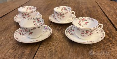 Servizio vintage da the composto da 4 tazze in porcellana inglese, decoro chinoiserie nel tono del rosa.