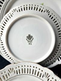 Questo set di sei piatti è decorato con un raffinato bordo traforato, simile a una cornice di pizzo che incornicia un delicato motivo floreale: boccioli che sbocciano, foglie sottili e ramoscelli delicati, come strappati da un album botanico del XIX secolo. Ogni piatto è un piccolo capolavoro che combina una smaltatura finissima, colori pastello e un bordo traforato che crea una sensazione di leggerezza e romanticismo.