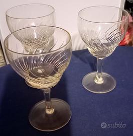 Servizio Bar Vintage: 27 Calici in Cristallo di 3 misure diverse+ Decanter Coordinato + caraffa d'acqua tutti con lo stesso identico decoro a spirale .