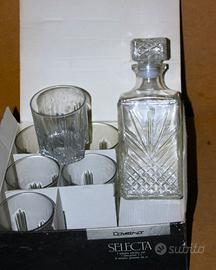Set 6 bicchieri whisky 30 cl. e decanter 1 l. in vetro. Fine anni 90. Mai usati. Scatola con colori sbiaditi. Pagamento in contanti Stezzano e zone limitrofe