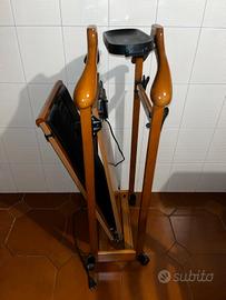Indossatore mettinpiega elettrico da camera in legno massiccio di faggio in ottimo stato. Dotato di ruote, pinze appendi pantaloni regolabili, vaschetta porta oggetti, ganci appendi cinture, due spalle appendiabiti, pannello imbottito per tenere in piega pantaloni, base per scarpe.