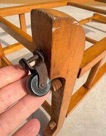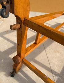 Servo muto vintage anni '60 in legno massello con ruote - design elegante Elegante servo muto originale anni '60 in legno massello finitura miele. Struttura solida e stabile, completo di: • Spalle sagomate per giacca • Barra per pantaloni • Supporto inferiore • 4 ruote originali in metallo Perfetto per camera da letto, cabina armadio o ambiente vintage / modern classic. Presenta normali segni del tempo (vedi foto), ma è strutturalmente integro e funzionante. Ideale per amanti del design retrò, arredamento mid-century o stile classico italiano.
