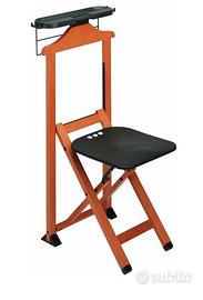 Dotato di sedile anatomico chiudibile, due staffe per pantaloni, ganci per cinture e cravatte, spalla appendiabiti per giacche e camicie