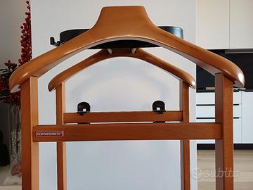 Servomuto Foppapedretti, funzionante. 2 spalle per giacche e camicie, 1 staffa per pantaloni, 2 pinze per gonne, vaschetta portaoggetti con ganci per cinture, base portascarpe e ruote piroettanti. Qualche segno di usura 48,oo euro