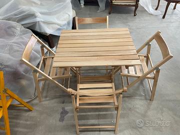 Set 1 tavolo e 4 sedie color legno pieghevoli
