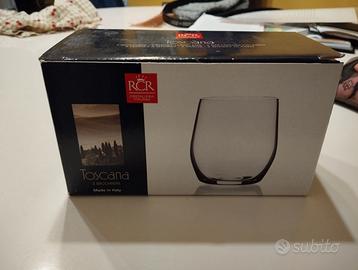 set 10 bicchieri in cristallo RCR nuovi, in confezione originale con etichetta mai usati. Ritiro a mano Reggio Emilia o Modena.