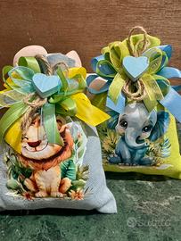 Set di 10 sacchetti portaconfetti a tema Animali della Savana. Ideali per battesimi, nascite o feste.