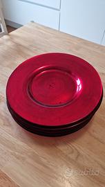 Set 11 sottopiatti rossi rotondi in vetro