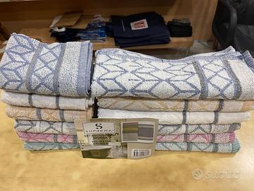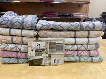Asciugamani di spugna misto cotone idrofila, tinta unita colorate, nuove non usate in busta originale Suprema. Confezione composta da: - 6 asciugamani viso cm.50x100 - 6 asciugamani ospite cm.40x60