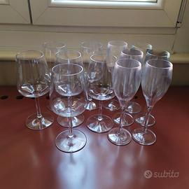Set 12 bicchieri, in ottima plastica rigida, con gambo, ovviamente lavabili, anche in lavastoviglie: 6 flut e 6 da vino. Sono in buonissime condizioni.