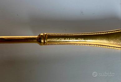 Set di 12 cucchiaini da tè con testa a forma di cuore e manico arrotondato, più largo all'estremità. Realizzato in zinco argentato (inciso sul retro del manico «Silver plated EP zinc»). Italia') -EP di Electro Plated-. Lunghezza 11,3 cm