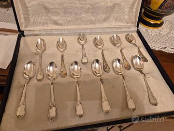 Set 12 cucchiaini da caffè argento 800 finemente lavorati. Anni 60, mai utilizzati. Peso complessivo 128grammi. Tutti punzonati sul retro