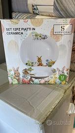 Set 12 piatti stampa pasquale 6 piatti piani 22.8cm 6 piatti fondi 20.3cm