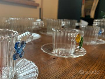 • Vetro borosilicato soffiato a bocca e lavorato a mano. È un vetro leggerissimo ma molto resistente agli sbalzi termici (può contenere liquidi bollenti).